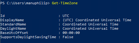 Get-TimeZone -ListAvailable | where ({$_.Id -like "Mountain*"}) - Copy the id shown corresponding to your location and set the new time zone by the command. Here again, change the string id as per your location: